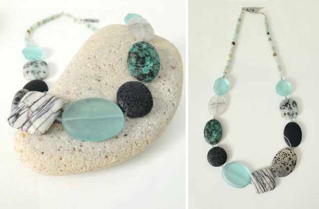 MJ065 Seaglass, agate, turquoise, lava jasper, amazonite and silver by Melissa James